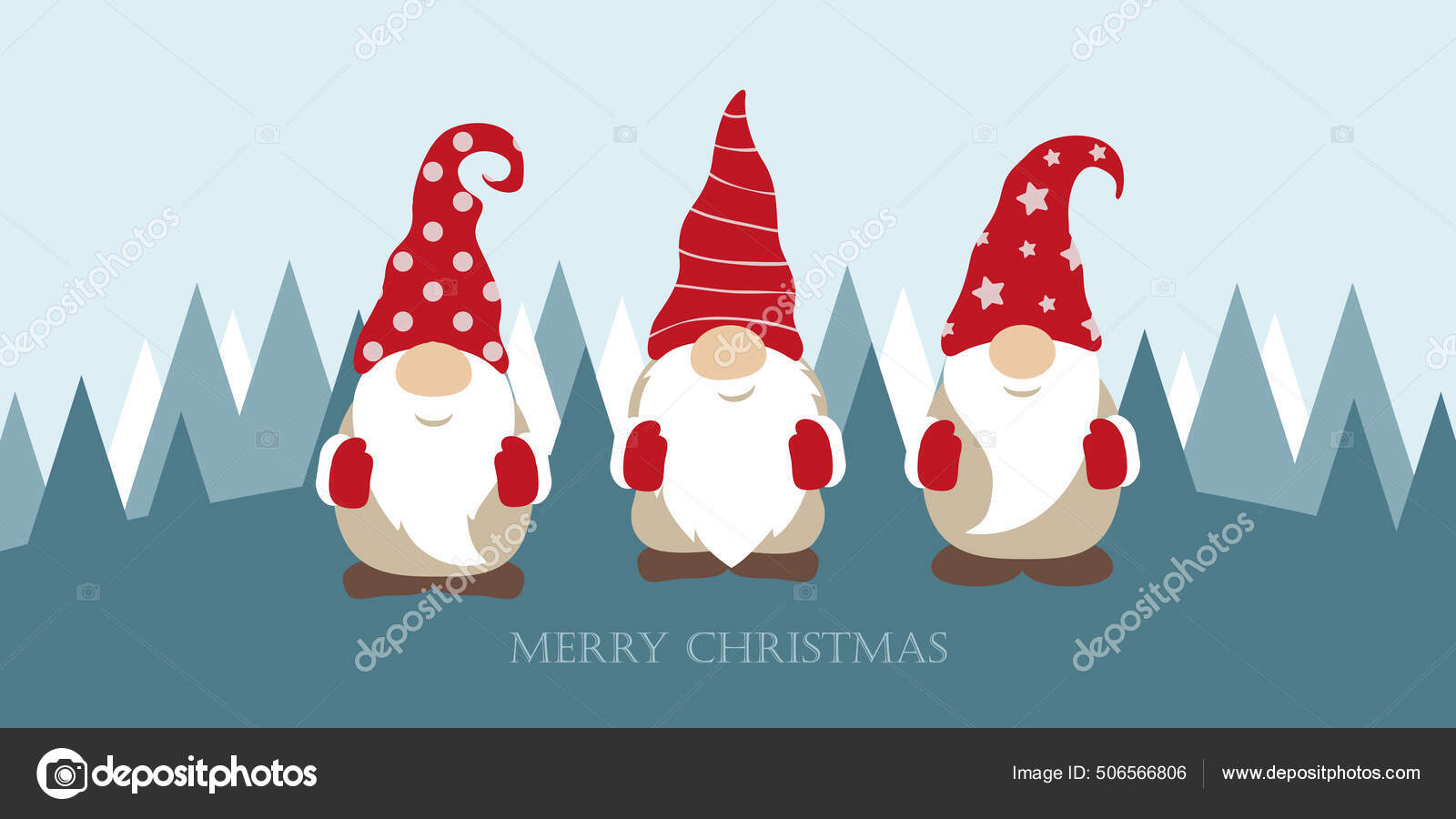 Tre söta jul tomtar med roliga mössor Stock Vector by